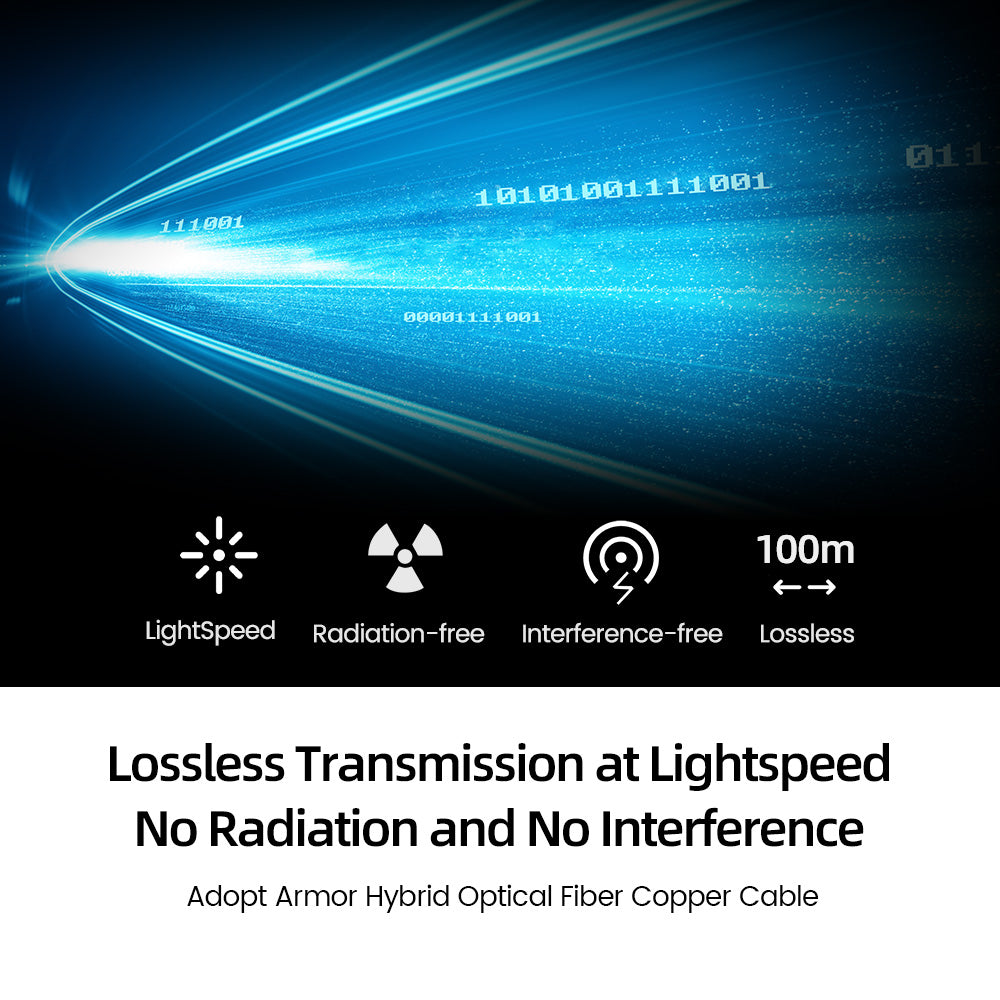 · Excellent anti-radiation and anti-interference ability, perfectly solve EMI/RFI (electromagnetic interference/radio frequency interference) problems, and transmit signals without loss